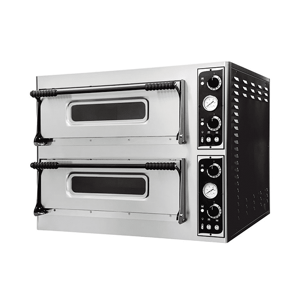 Two chambers oven For cooking 4 + 4 pizzas (ø 32 cm.) Cooking surface in refractory stones Sheathed heating elements